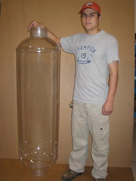 In addition to more common slump or drape formed products like semi-cylinders, our technicians have developed expertise in conical shapes and fully rolled cylinders, numerous examples of which can be found in our photo gallery. Precise plastic cones are often necessary for fully draining testing vessels, pharmaceutical production equipment, packaging facilities, or as an end-use product in themselves. Our custom manufactured cylinders have been used in applications ranging from display cases to high impact chemical containment.